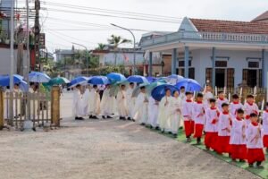 Dẫu giữa những ngày đông giá rét cùng với những cơn mưa phùn, nhưng không làm chùn chân người giáo dân Trang Hậu trở về quê hương để tham dự ngày Chầu Chúa Giêsu Thánh Thể thay giáo phận vào Chúa Nhật thứ V mùa thường niên năm A, ngày 08/02/2026.